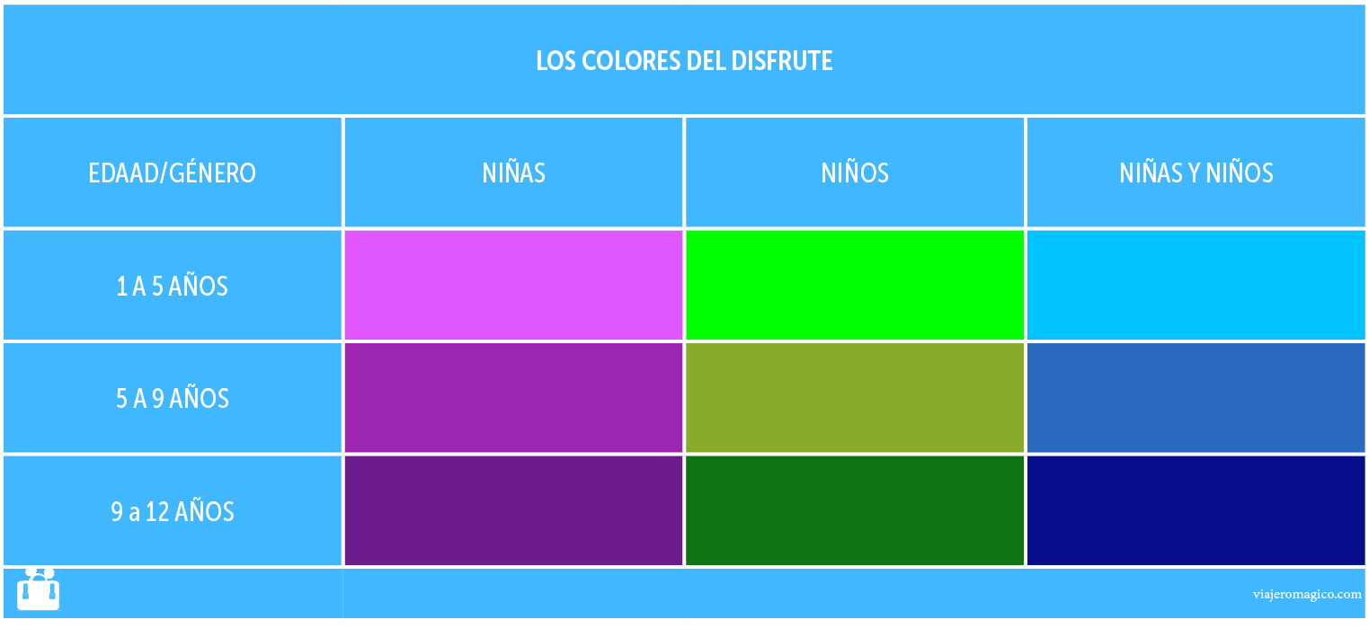 En la última columna se indica el público infantil objetivo en base a los colores fijados en el punto anterior.